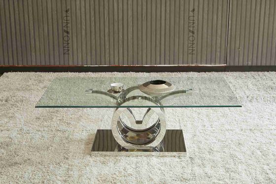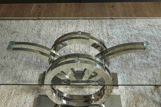 सीगल डिजाइन स्टेनलेस स्टील बेस ग्लास टॉप डाइनिंग टेबल फ्रेम सिल्वर