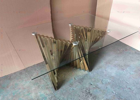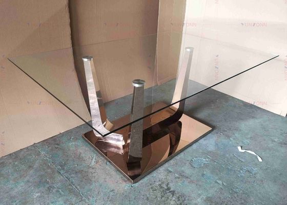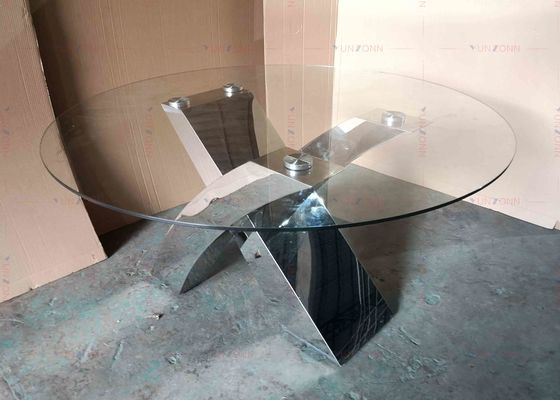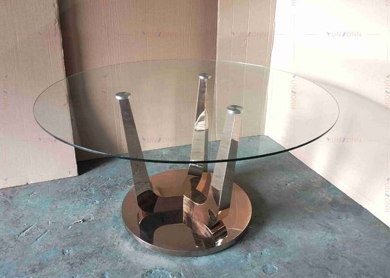 ग्लॉस ग्लास डाइनिंग टेबल सेट एसएस टेबल बेस