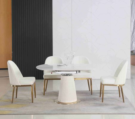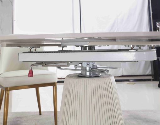 डाइनिंग रूम के लिए 6 सीटों के साथ एक्सटेंडेबल व्हाइट कॉन्ट्रैक्टेड टेलीस्कोपिक फोल्डिंग राउंड टेबल