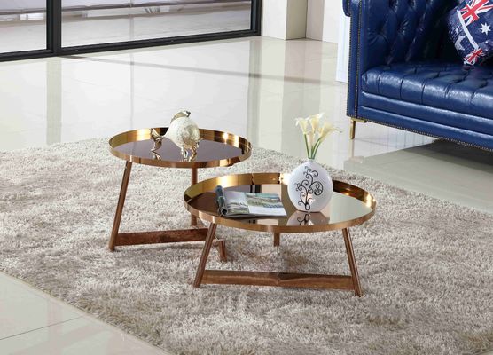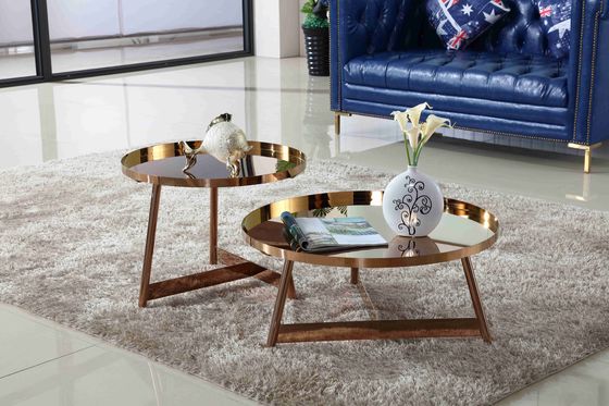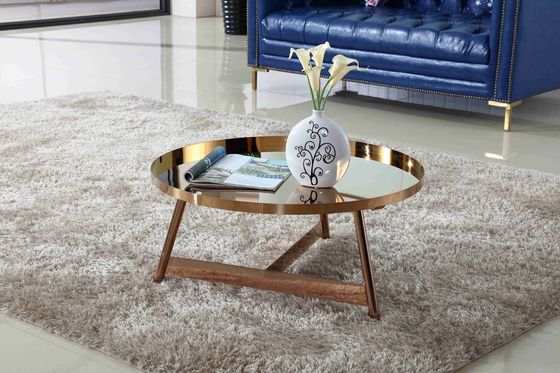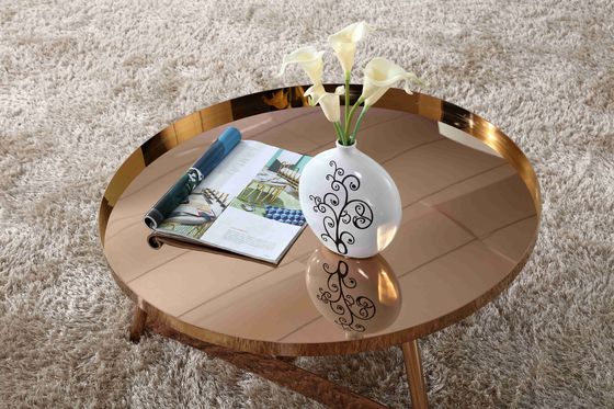 लक्ज़री इंटीरियर डिज़ाइन स्टेनलेस स्टील फ़्रेम राउंड रोज़ गोल्ड शाइनिंग कॉफ़ी टेबल लिविंग रूम फ़र्निचर के लिए