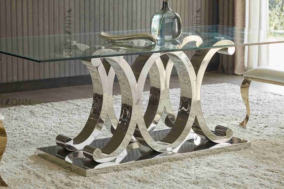 टेम्पर्ड ग्लास हटाने योग्य के साथ आधुनिक 10 सीटर एसएस डाइनिंग टेबल