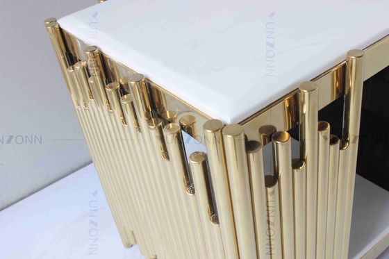लक्ज़री गोल्ड टीवी टेबल व्हाइट मार्बल टेबल के लिविंग रूम के लिए दराज के साथ शीर्ष स्टेनलेस स्टील