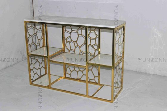 खोखले-आउट पैटर्न नक्काशी डिजाइन भंडारण अलमारियाँ संगमरमर सोना चढ़ाया हुआ ठंडे बस्ते में डालने;