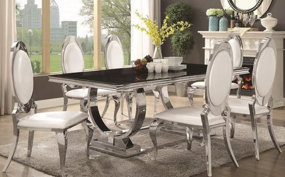 लग्जरी मॉडर्न सिल्वर 150*90*75 साइज होम फर्नीचर डाइनिंग रूम टेबल