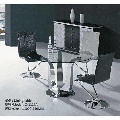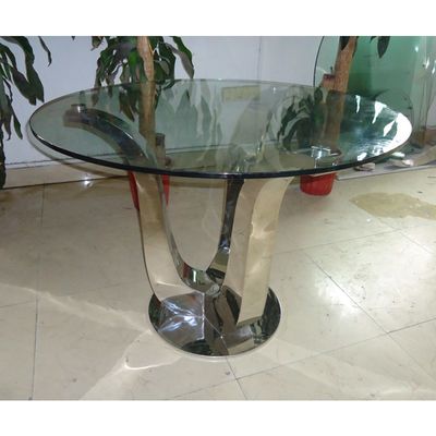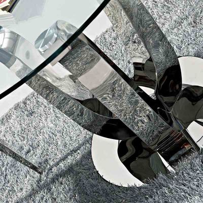 एंटीक ग्लैम सिल्वर डाइनिंग टेबल सेट D150*H75 ग्लास टॉप टेबल