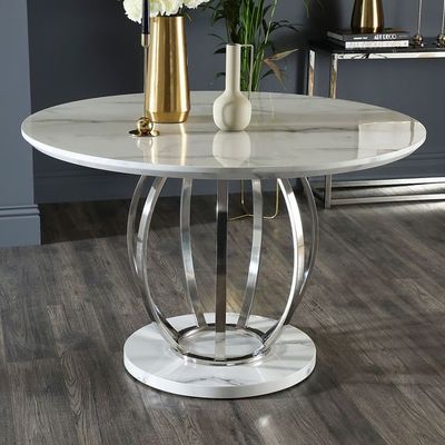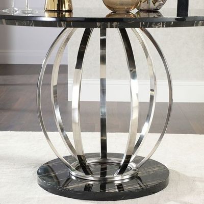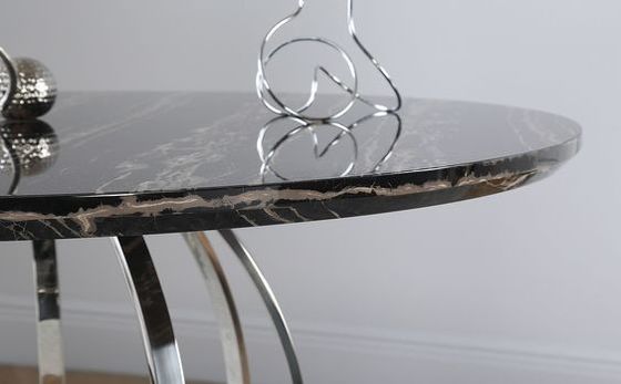 कुर्सियों के सेट के साथ सेवरी मार्बल टॉप एसएस स्टेनलेस स्टील सिल्वर डाइनिंग टेबल