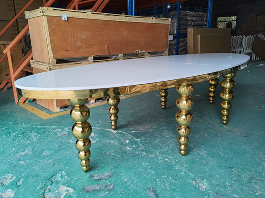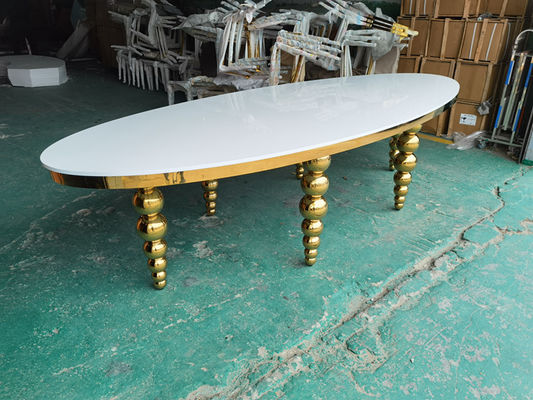 ओवल एमडीएफ टेबल बैंक्वेट टेबल एसएस गोल्ड बॉल लेग