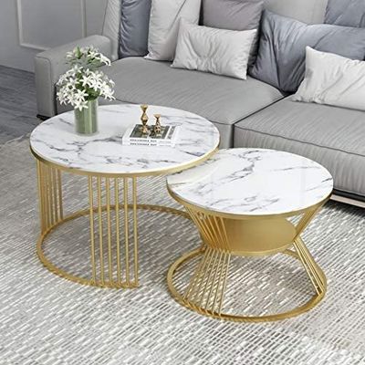 स्टोरेज स्ट्राइक के साथ मार्बल ग्लास टॉप राउंड कॉफी टेबल डिजाइन गोल्ड कॉफी टेबल