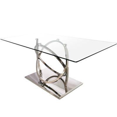 डाइनिंग रूम के लिए साफ़ ग्लास के साथ लक्ज़री सिल्वर मेटल डाइनिंग टेबल