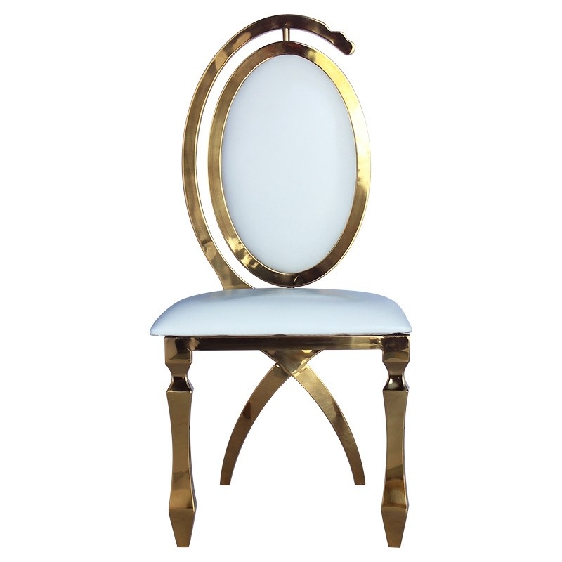असाधारण शादी की कुर्सियाँ अक्सर चमकदार स्टेनलेस स्टील से बनी होती हैं, और इस अपस्केल डिज़ाइन में एक आकर्षक विशेष रूप से डिज़ाइन किया गया बैकरेस्ट होता है जो एक शूटिंग स्टार की तरह निशान छोड़ देता है।