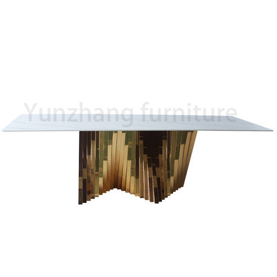 लक्ज़री गोल्ड अनियमित डाइनिंग टेबल मेटल बेस मार्बल टेबल टॉप के साथ