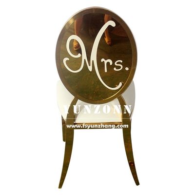 लक्जरी सोने स्टेनलेस स्टील गोल वापस श्री & श्रीमती दुल्हन और दूल्हे शादी भोज कुर्सी