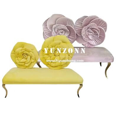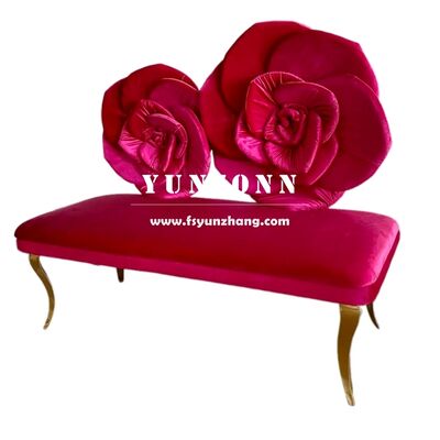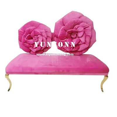 होटल वेडिंग लवर्स के पसंदीदा के लिए रोज़ फ्लावर बैक डिज़ाइन पिंक रेड वेलवेट सीटर के साथ आधुनिक स्टेनलेस स्टील सोफा
