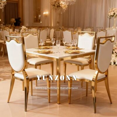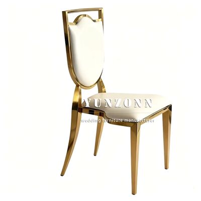 आधुनिक यूरोपीय शादी की घटना भोज हॉल फर्नीचर स्टेनलेस स्टील फ्रेम लक्जरी व्हाइट डाइनिंग चेयर |