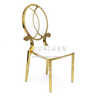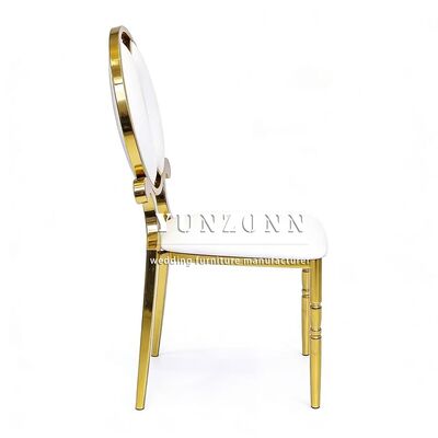 थोक आधुनिक स्टैकेबल फर्नीचर गोल्ड डाइनिंग चेयर फैंसी गोल्ड स्टेनलेस स्टील वेडिंग चेयर रेस्तरां और बैंक्वेट के लिए |