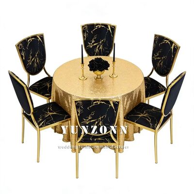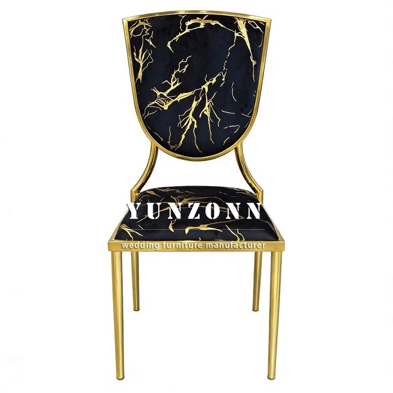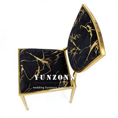 | उत्पाद का नामः | सोने की थीम वाली शादियां और होटल काले मखमल कुशन धातु स्टैक करने योग्य बैंकेट कुर्सियां |