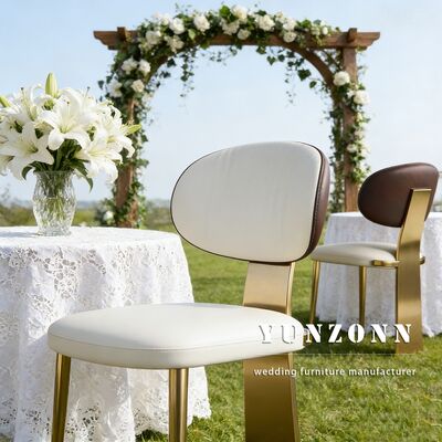आधुनिक लक्जरी इवेंट चेयर मिनिमलिस्ट गोल्डन स्टेनलेस स्टील फ्रेम PU लेदर वेडिंग चेयर इवेंट के लिए |