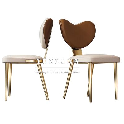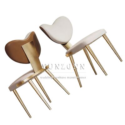 सुंदर दिल के आकार की चमड़े की कुर्सी लक्जरी विला भोजन कक्ष फर्नीचर उत्तम धातु पैर भोजन कुर्सी |
