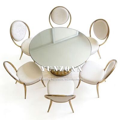 | उत्पाद का नामः | आउटडोर शादी के भोज के आयोजनों के लिए लक्जरी टिकाऊ आधुनिक स्टेनलेस स्टील स्वर्ण पैड कुर्सियां |