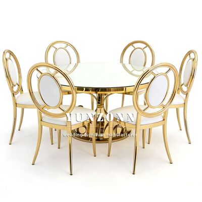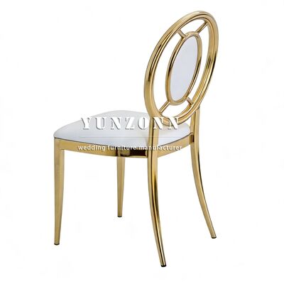 | उत्पाद का नामः | लक्जरी शादी की आपूर्ति आउटडोर शादी के आयोजनों और भोजों के लिए सोने में टिकाऊ स्टेनलेस स्टील भोजन कुर्सी |