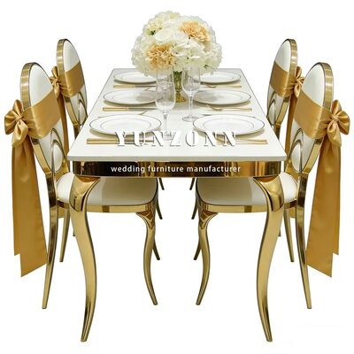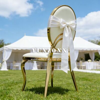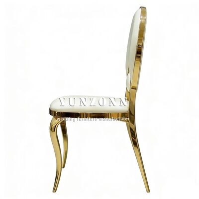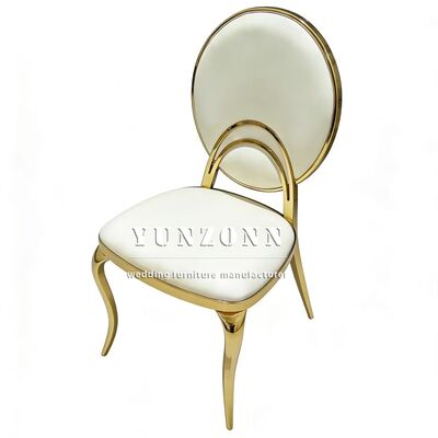 | उत्पाद का नाम: | सस्ते होटल शादी पार्टी इवेंट्स फर्नीचर व्हाइट PU कुशन गोल्ड स्टेनलेस स्टील राउंड बैक डाइनिंग चेयर दुल्हन और दूल्हा |