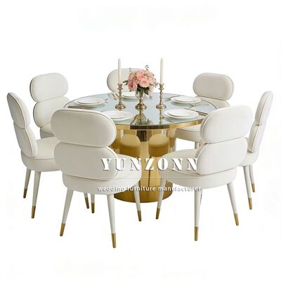 Q3: आपके उत्पादों की सामग्री क्या है? A3: टेबल और कुर्सी स्टेनलेस स्टील फ्रेम,मेज पर कठोर कांच; संगमरमर या लकड़ी। कुर्सी के तकिए उच्च घनत्व वाले स्पंज और उच्च गुणवत्ता वाले चमड़े या कपड़े से बने होते हैं।