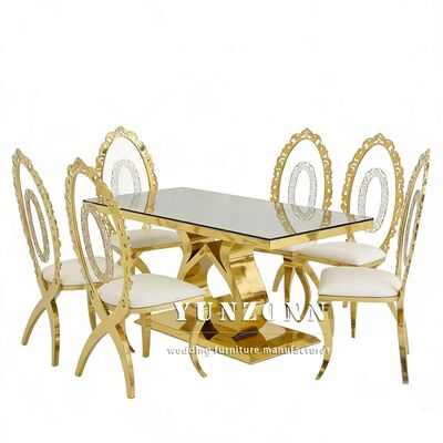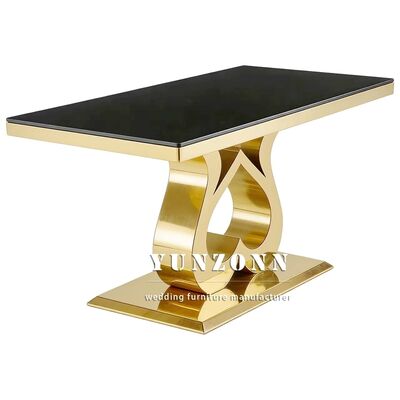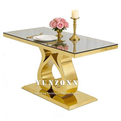| उत्पाद का नामः | सस्ते होटल घटनाएँ पार्टी फर्नीचर दुल्हन और दूल्हे की मेज सोना स्टेनलेस स्टील कांच शीर्ष आयताकार शादी खाने की मेज |