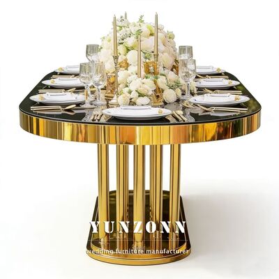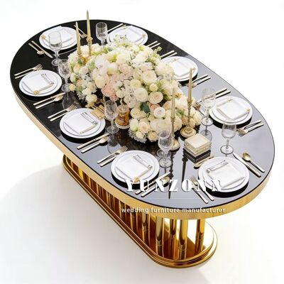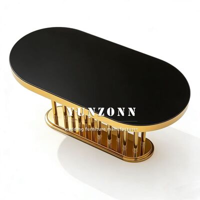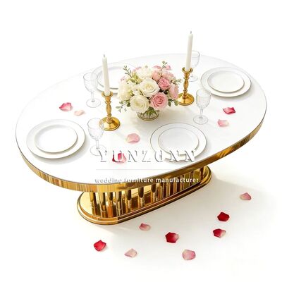 | उत्पाद का नाम: | शादी का फर्नीचर थोक सोना अंडाकार स्टेनलेस स्टील फ्रेम सफेद दर्पण ग्लास टॉप लंबी टेबल डाइनिंग होटल टेबल शादी के लिए |