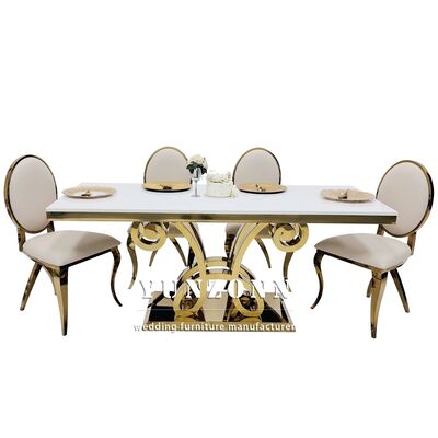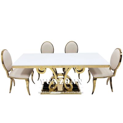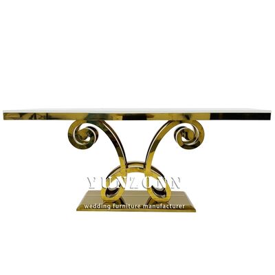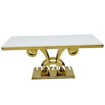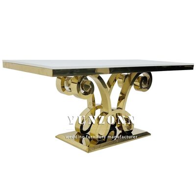 | उत्पाद का नाम: | नई डिज़ाइन लक्जरी आयताकार ग्लास टॉप गोल्ड स्टेनलेस स्टील वेडिंग टेबल पार्टी के लिए प्रयुक्त |