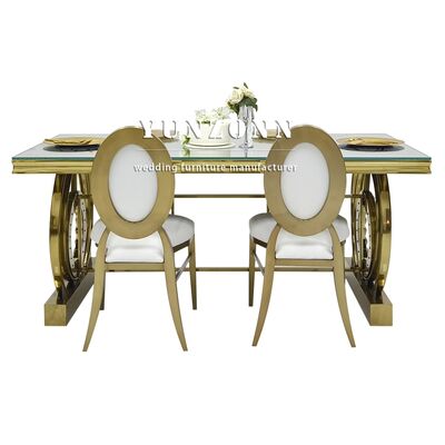 | उत्पाद का नाम: | शादी, होटल, इवेंट्स के लिए बैंक्वेट टेबल स्टेनलेस स्टील फ्रेम क्रिस्टल डेकोर मिरर ग्लास डेस्कटॉप टेबल होटल फर्नीचर |