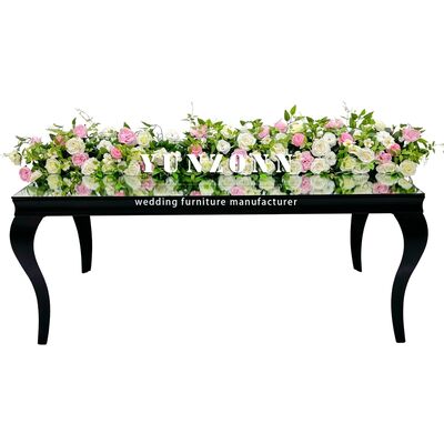 | Product Name: | Mirror Tempered Glass Event Wedding Table Rectangular Shape Black Stainless Steel Hotel Restaurant Table | ||