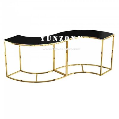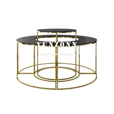 स्टेनलेस स्टील धातु एमडीएफ शीर्ष शादी की मेज सजावट होटल के उपयोग के लिए सुरुचिपूर्ण सर्कल डिजाइन