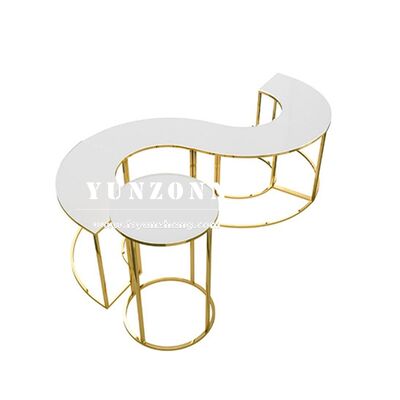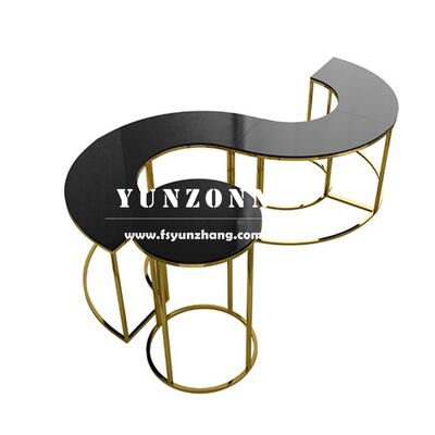 | उत्पाद का नामः | स्टेनलेस स्टील धातु एमडीएफ शीर्ष शादी की मेज सजावट होटल के उपयोग के लिए सुरुचिपूर्ण सर्कल डिजाइन |