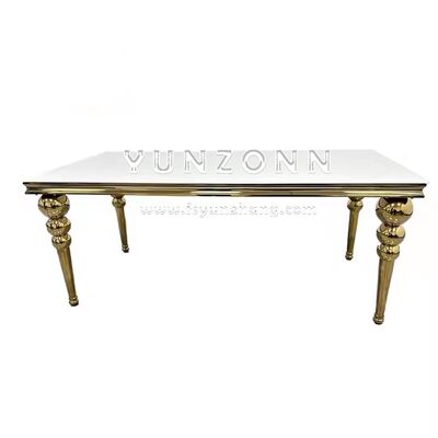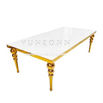 | उत्पाद का नामः | होटल के लिए लक्जरी एमडीएफ 12-सीटर स्वर्ण धातु आयत भोज भोजन टेबल सुरुचिपूर्ण केंद्र मेज |