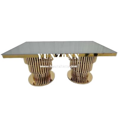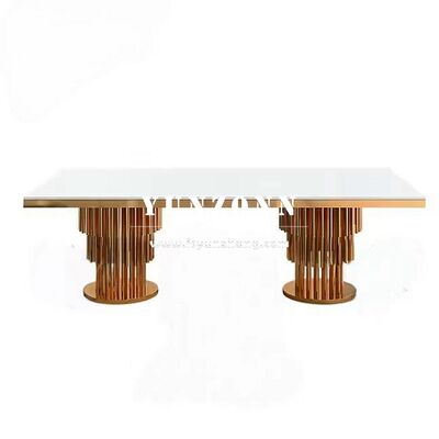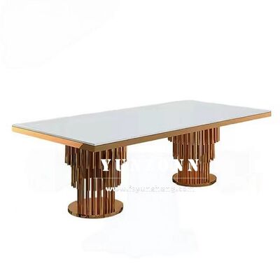 | उत्पाद का नामः | आधुनिक स्टेनलेस स्टील गोल्ड डाइनिंग टेबल सेट आउटडोर बैंक्वेट शादी और होटल कार्यक्रमों के लिए |