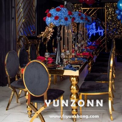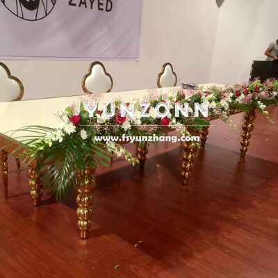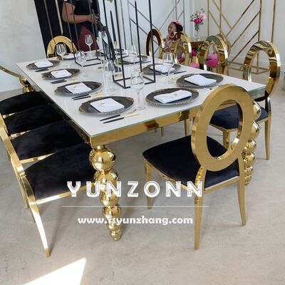 | उत्पाद का नाम: | होटलों और हॉल के लिए स्टेनलेस स्टील बॉल लेग्स के साथ आधुनिक लक्जरी रेक्टेंगल वेडिंग और डाइनिंग टेबल |