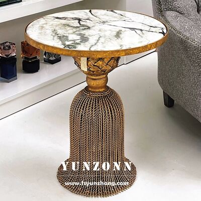 | उत्पाद का नामः | हस्तनिर्मित आधुनिक रॉयल डिजाइन लोहे का कार्लटन साइड टेबल लक्जरी पेडस्टल टासल सजावटी धातु फर्नीचर घर के उपयोग के लिए |
