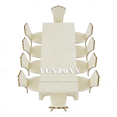 Q3: आपके उत्पादों की सामग्री क्या है? A3: टेबल और कुर्सी स्टेनलेस स्टील फ्रेम, टेबल पर टेम्पर्ड ग्लास; संगमरमर या लकड़ी। कुर्सी कुशन उच्च घनत्व वाले स्पंज और उच्च गुणवत्ता वाले चमड़े या कपड़े से बने होते हैं।