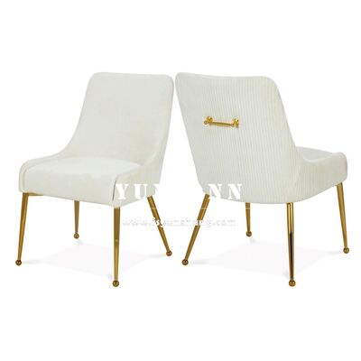| उत्पाद का नामः | लक्जरी होटल सोने स्टेनलेस स्टील ट्यूबलर Tufted Handel लाइन वापस बेज मखमल upholstered भोजन कक्ष के लिए भोजन कुर्सियों |